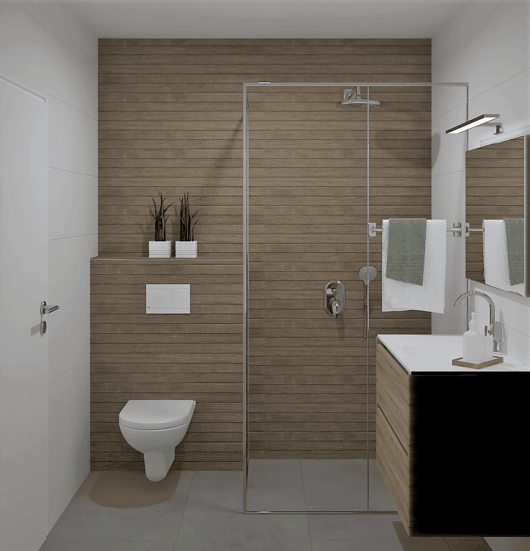 מכיוון שמדובר על שוכרים עתידיים שיתחלפו מדי תקופה – בוצעה החלפת צנרת באופן מלא למניעת תקלות חוזרות ונשנות ו"טרטור" של בעלי הדירה, התווספו תאורה ושקעי חשמל והוחלט על בחירת קווים נקיים, צבעים שקטים וחומרים קלים לתחזוקה וניקוי וכל זה תוך יצירת חדרי רחצה מפנקים ועכשווים.